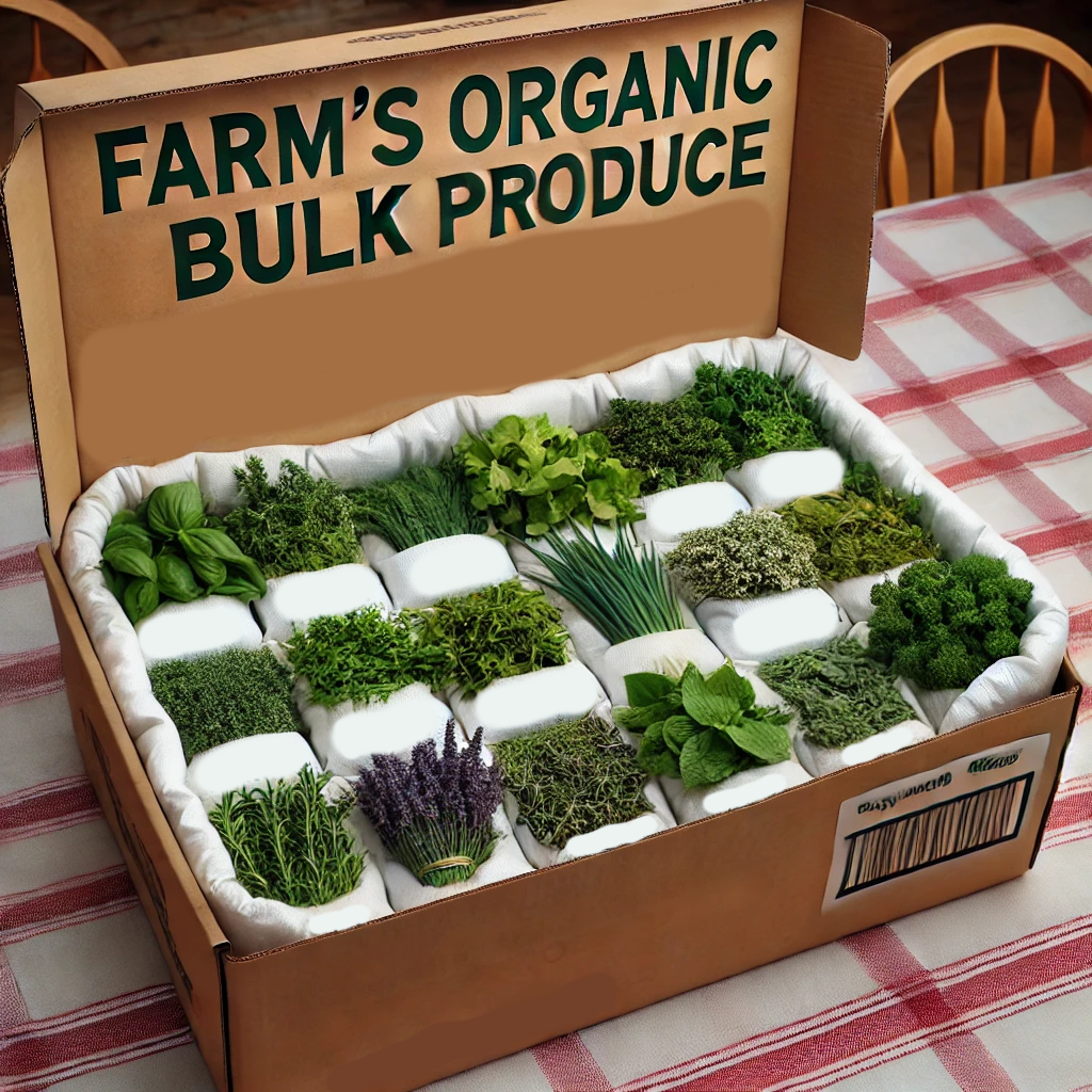 Las cajas a granel de hierbas mixtas contienen una colección de las hierbas más frescas disponibles en temporada, que incluyen: albahaca, cebollino, cilantro, lavanda, bálsamo de limón, orégano, perejil, romero, salvia y tomillo.