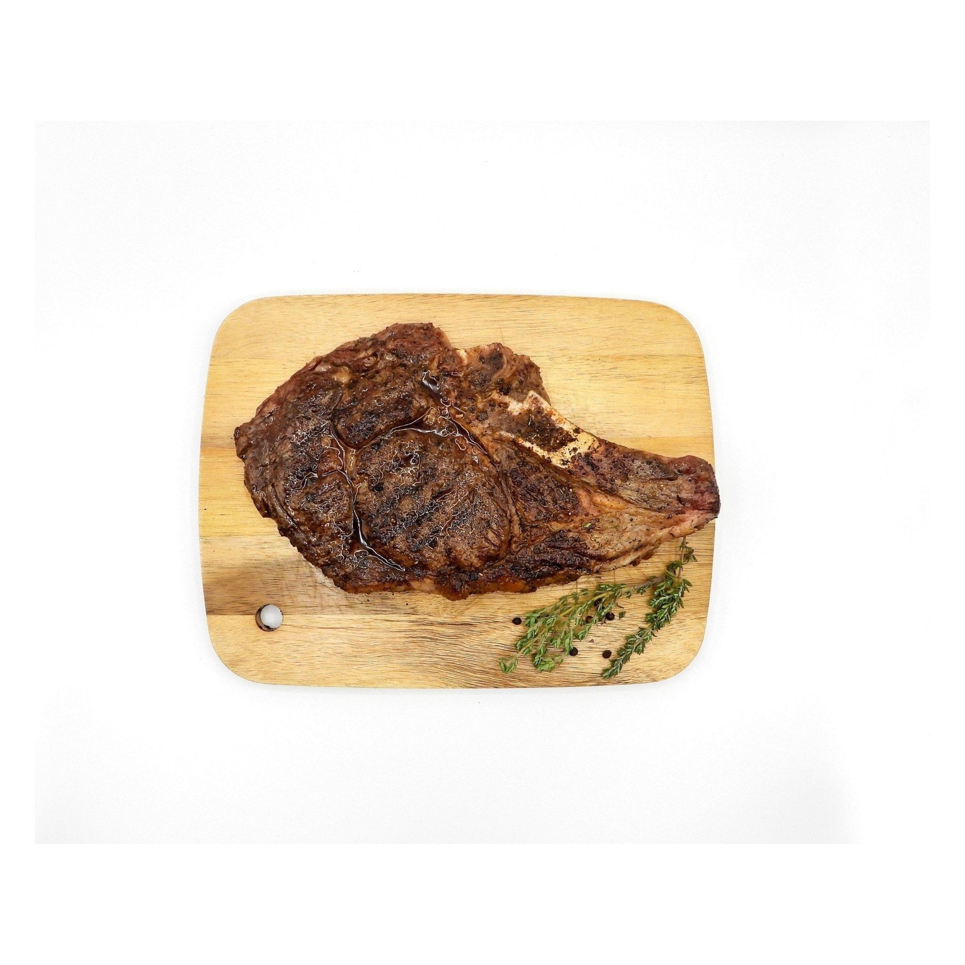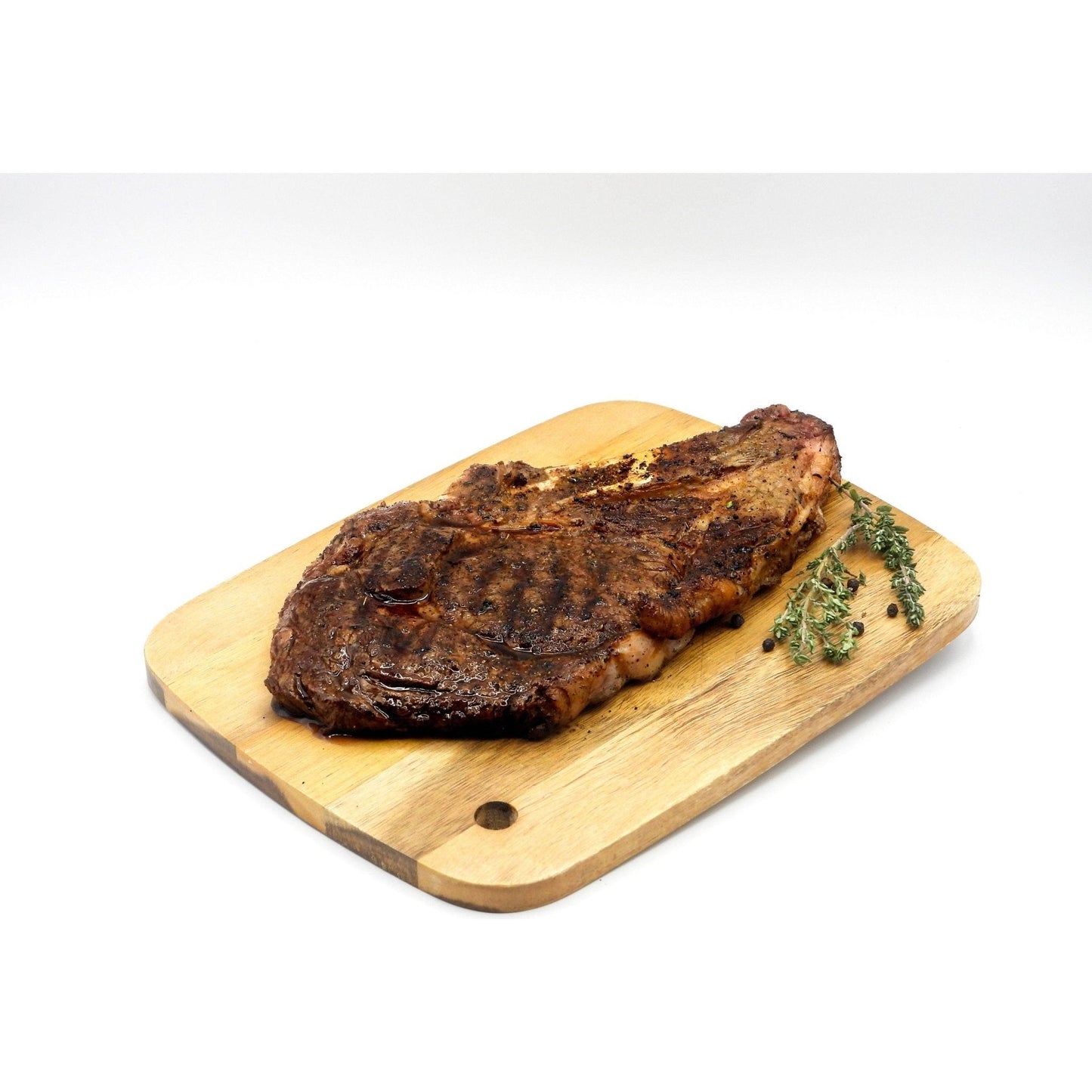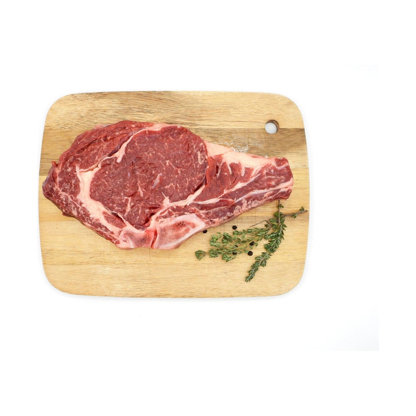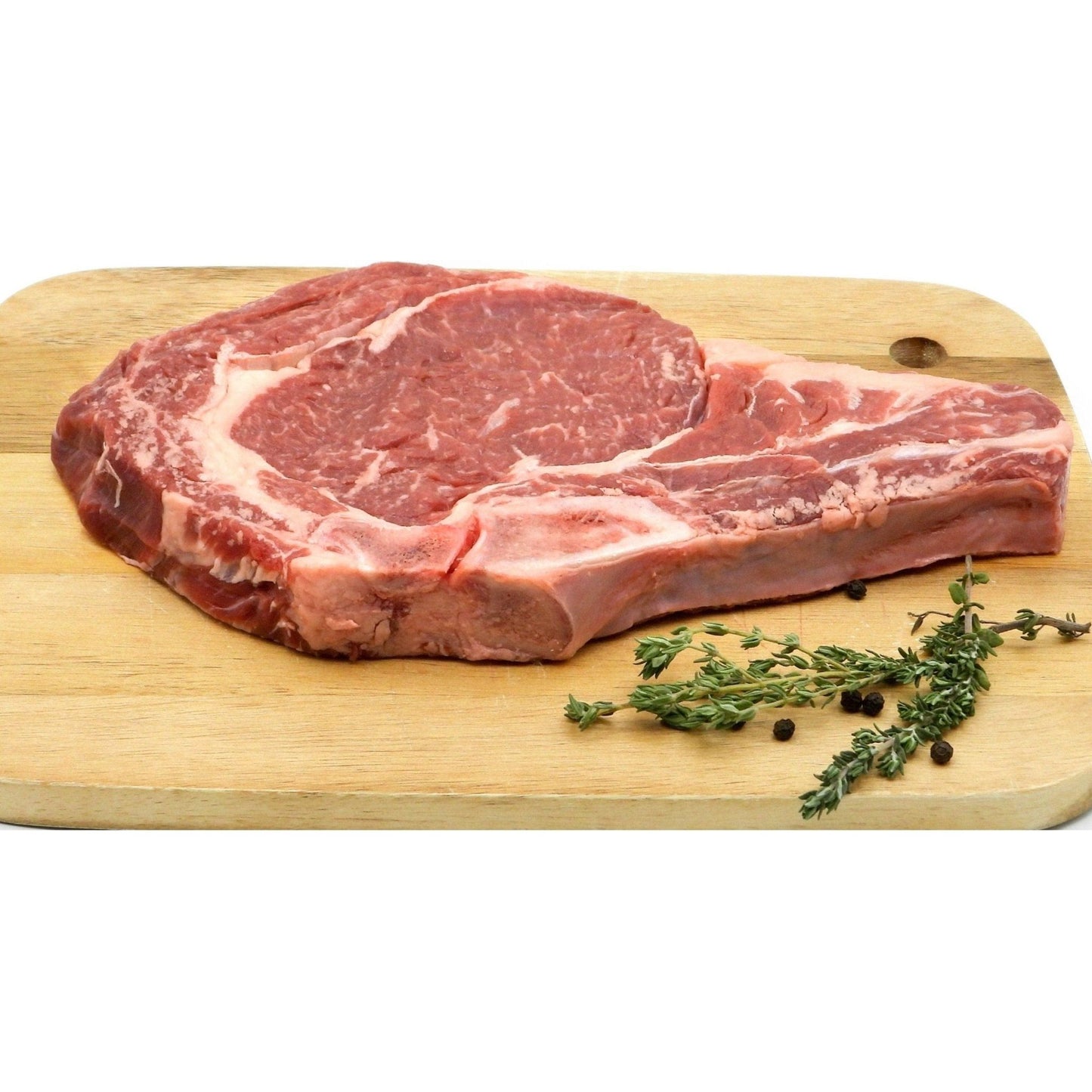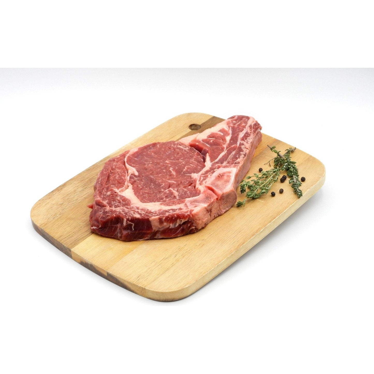 Rib Steak proviene de la sección primaria de costillas de la vaca y es conocido por la misma ternura y increíble sabor que su contraparte deshuesada Ribeye Steak. La adición de hueso a este corte asegura un plato de comida mucho más sabroso ya que esta porción tiene generosas proporciones de grasa intramuscular, que se derrite durante la cocción a alta temperatura creando un rico sabor y textura. Este es un corte de carne de res bien veteado y granulado, que permanece suculento incluso cocido hasta que esté bien cocido. Esto lo convierte en un buen corte para métodos de cocción con calor seco como asar a la parrilla, asar a la parrilla y freír. Al asar este corte a la parrilla o a la parrilla, todo lo que se necesita es un chorrito de salsa barbacoa y dejar que acompañe el excelente sabor de la carne.
