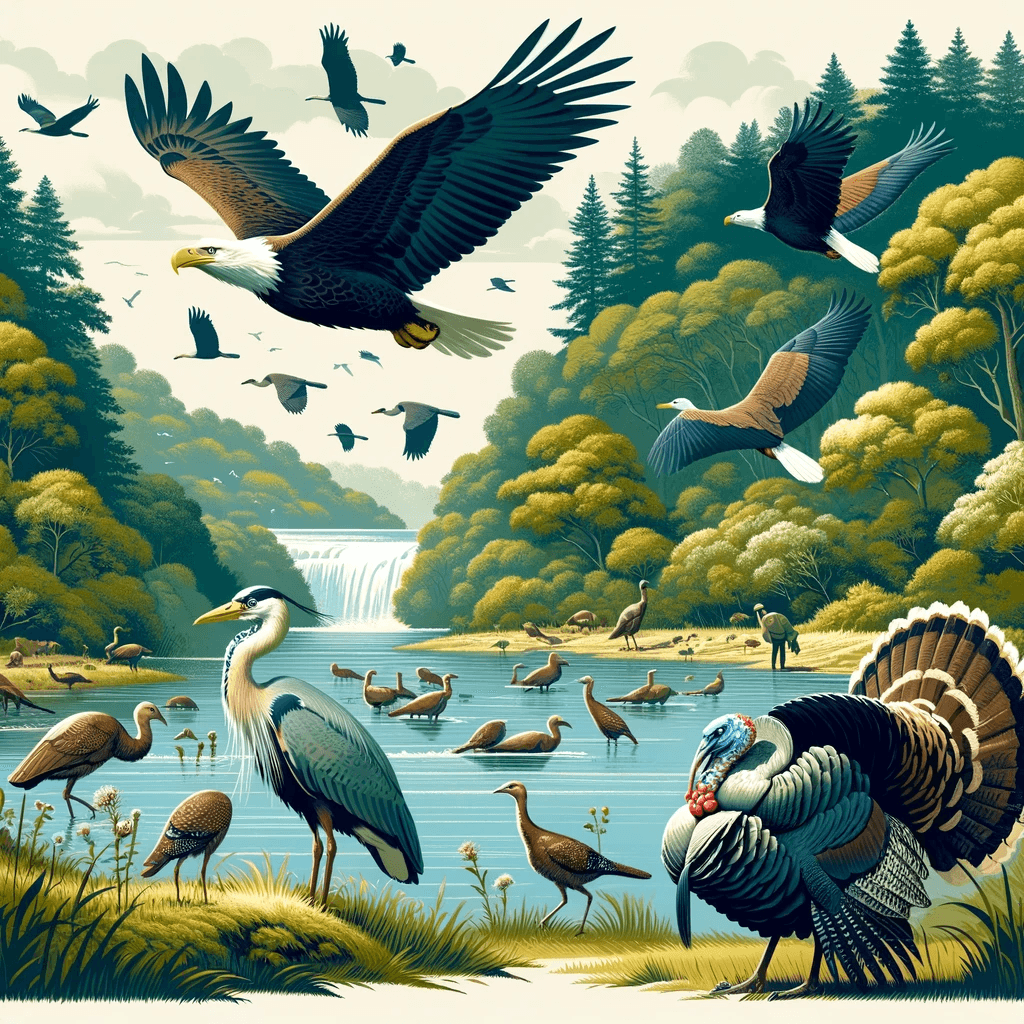It is common to see Bald Eagles, Blue Heron and Wild Turkeys here.