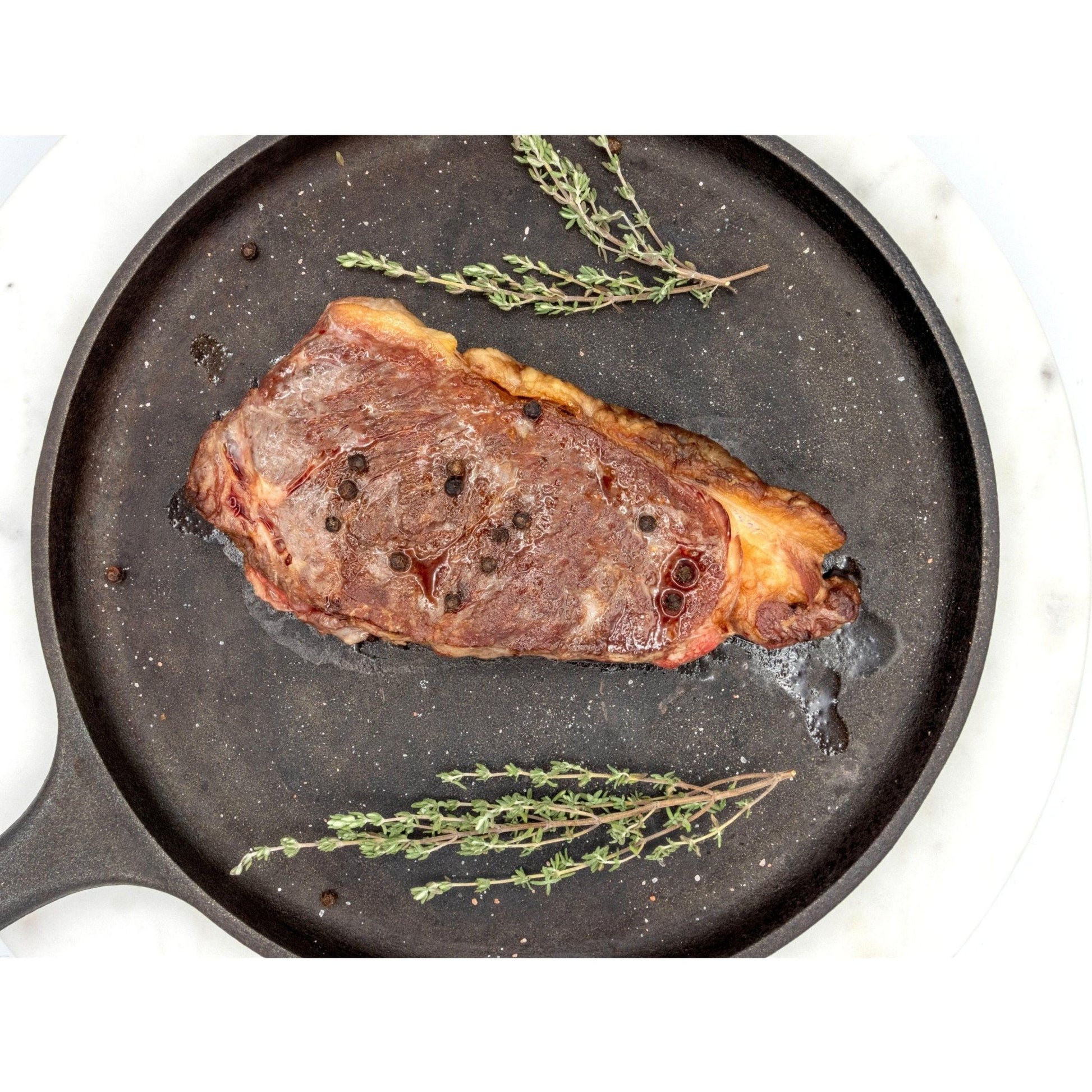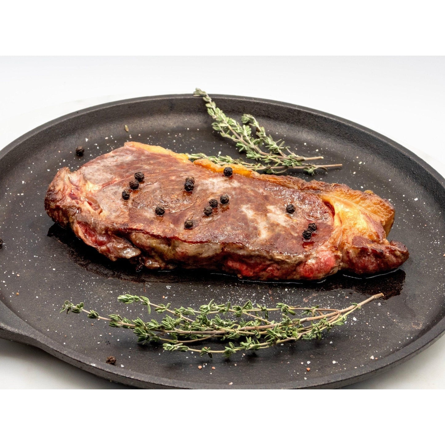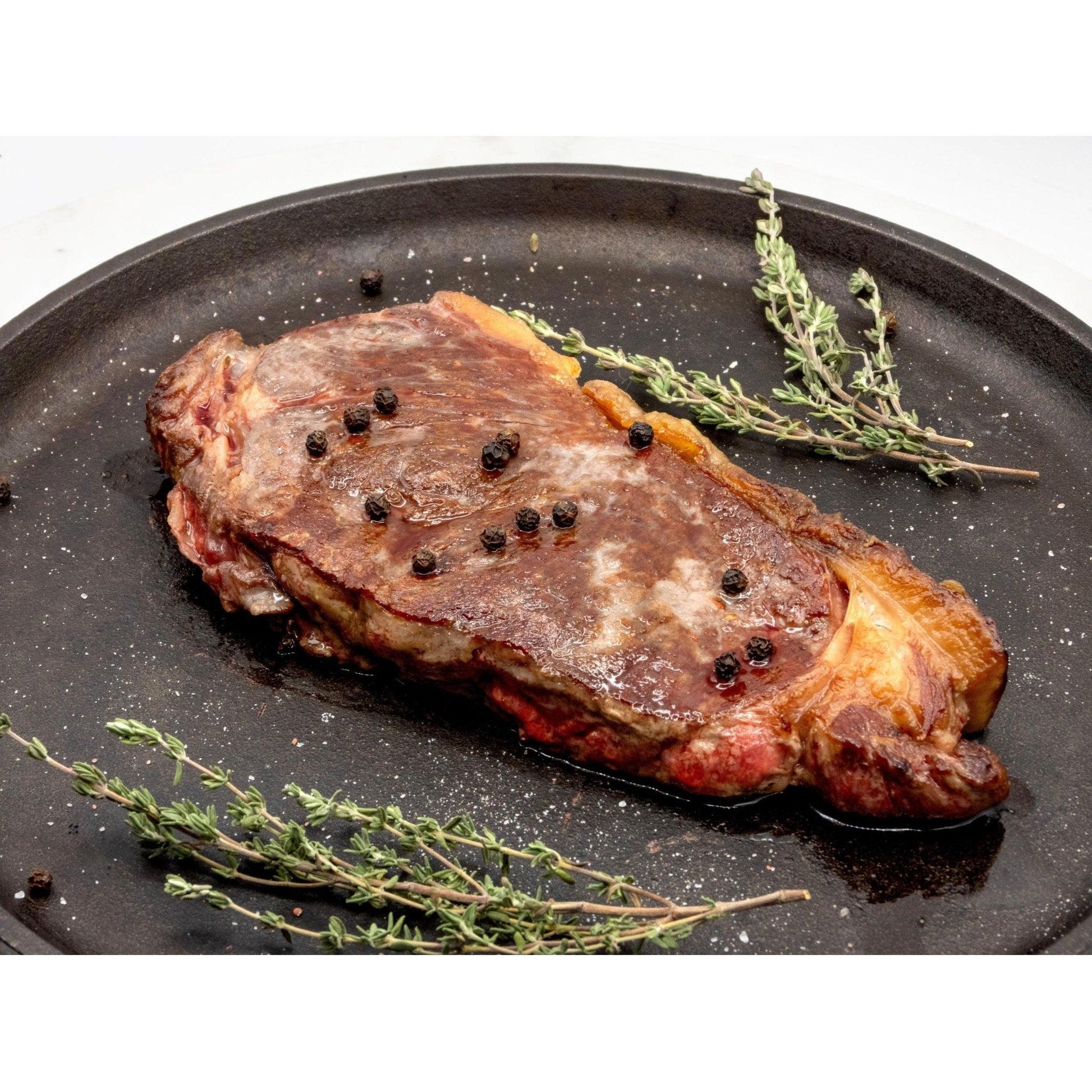 Akaushi Wagyu Beef Striploin Steak (aka NY Strip) is a cut from the short loin and is finely textured, tender, and juicy. One of the more popular steak cuts, its signature buttery flavor and moderate marbling make it an excellent, less fatty steak choice.